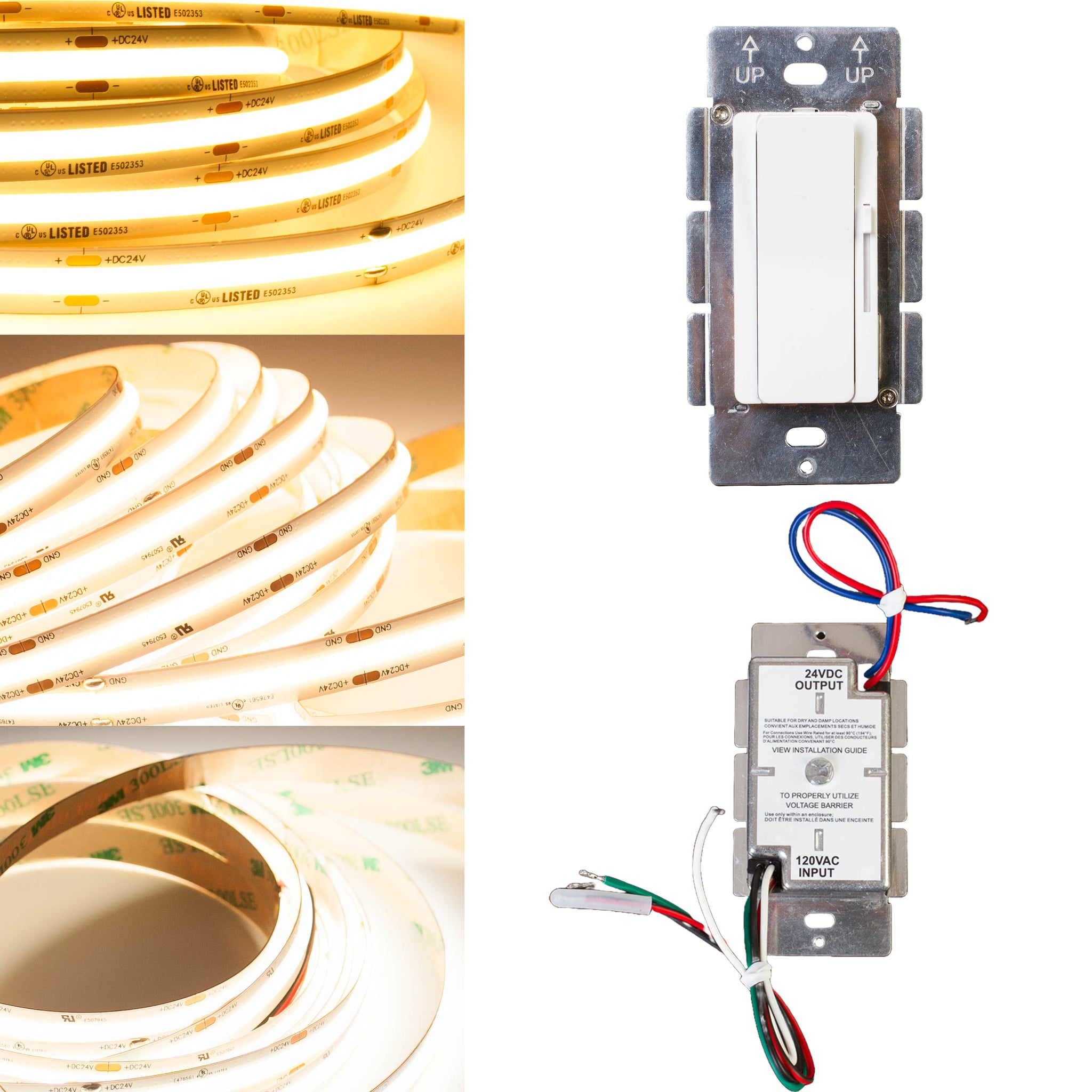 - The high-quality COB chip has 528pcs LED chip per meter which can produce continuous brightness throughout the strip.