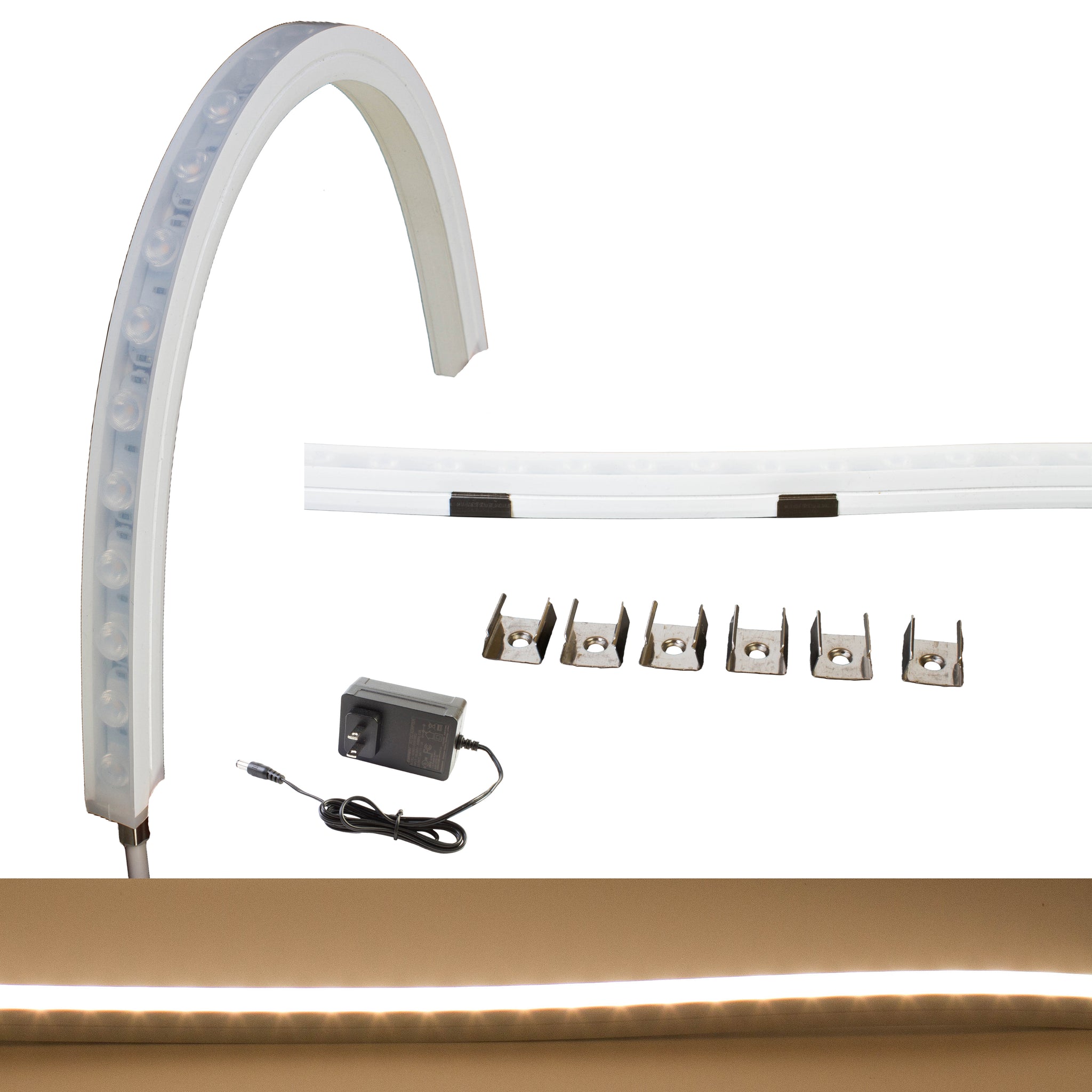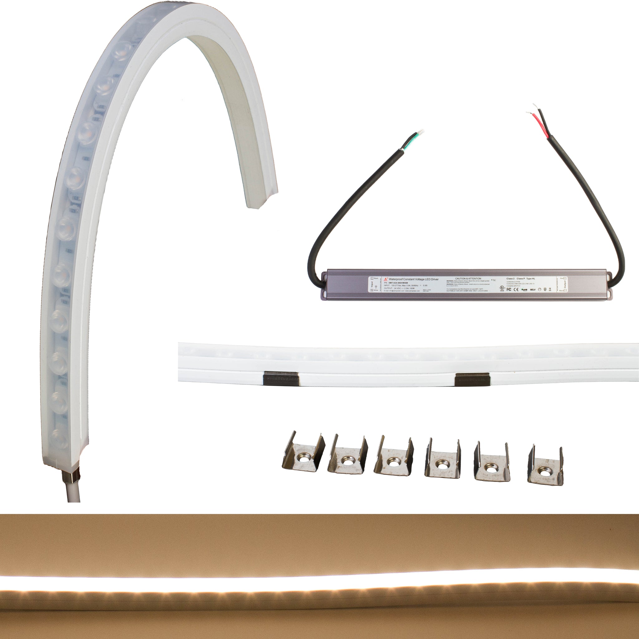 The bendable, waterproof LED light for wall washing can be angled to the side and upwards, allowing for multiple flexible options for your projects. With a 30-degree beam angle, this light can illuminate your wall up to 10ft high. Choose from mounting clips pr straight aluminum channel for effortless installation. This versatile light is suitable for dry, damp, and wet locations, making it ideal for exhibits, retail stores, bathrooms, or as decoration. You can choose between warm white and cool white to suit your specific needs, and various power supply options are available, including wall plug-ins, waterproof options, and a dimmable driver that can be used with most AC wall dimmer switches for easy brightness control.