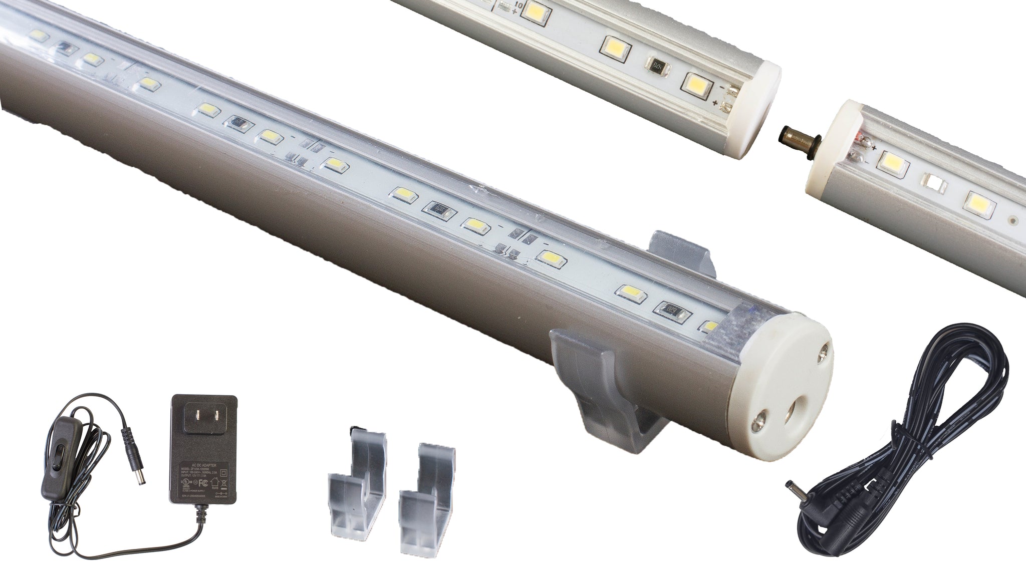 2pcs 18 inches white color C3014 Series LED showcase lights linked total 37 inches. perfect for your small cabinet, Jewelry cabinet, under cabinet or showcase. These lights are waterproof can be use in damp or cold location.