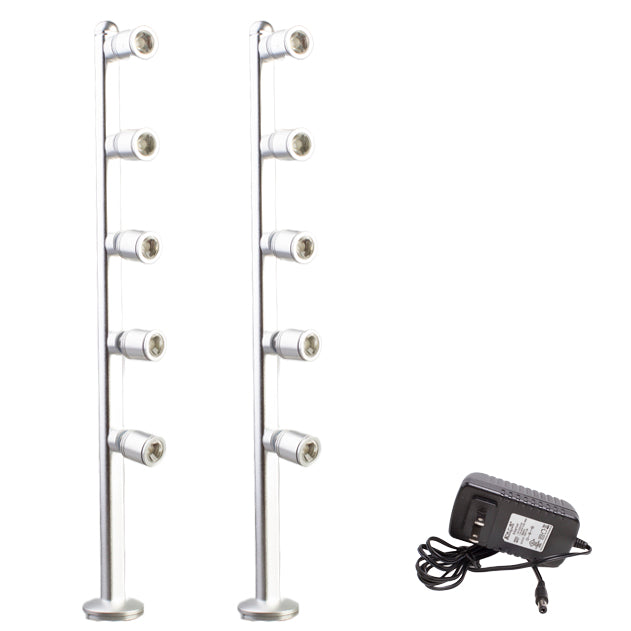 Easily illuminate your jewelry, watches, antiques, cell phones, and boutique stores with our versatile FY-55 silver 5-light head Jewelry LED Pole light. Perfect for cabinets or shelves, this adjustable pole light offers customizable lighting for your specific needs.